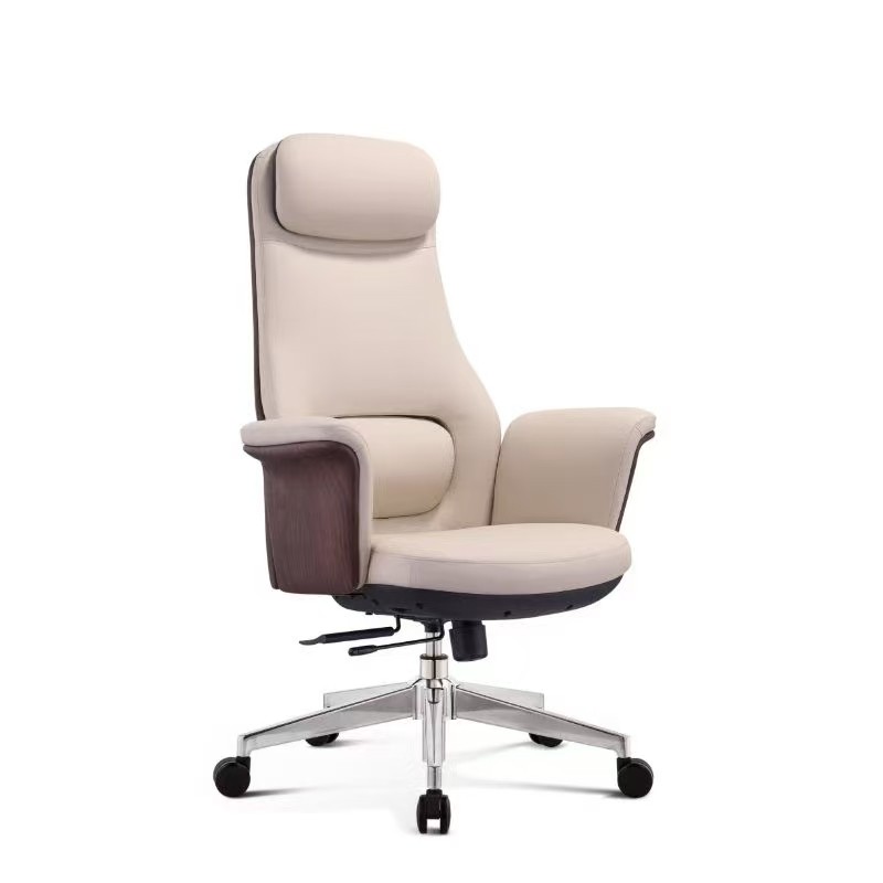 High Back Executive Office Chair Wooden Armrest Ergonomic Manager Chair for Commercial Project Bulk Order
