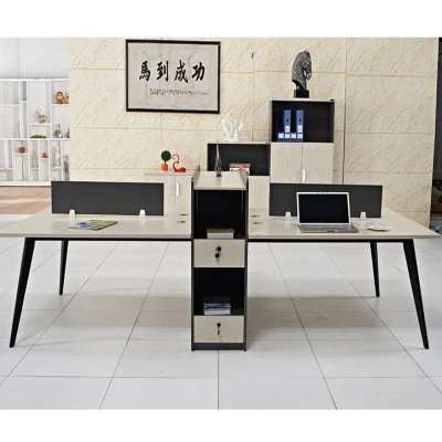 Modern 4-person office desk with storage, ideal for collaborative workspaces and available for wholesale.